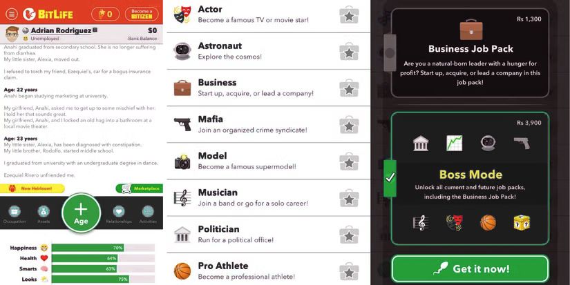 • Free Players: You can still enjoy a lot of career options in BitLife, but running a business is locked unless you buy the Business Job Pack.